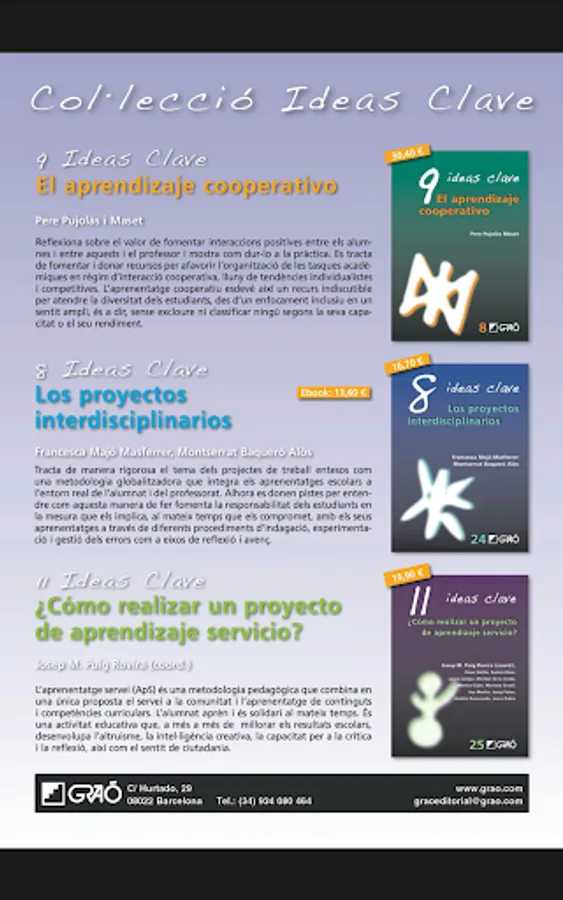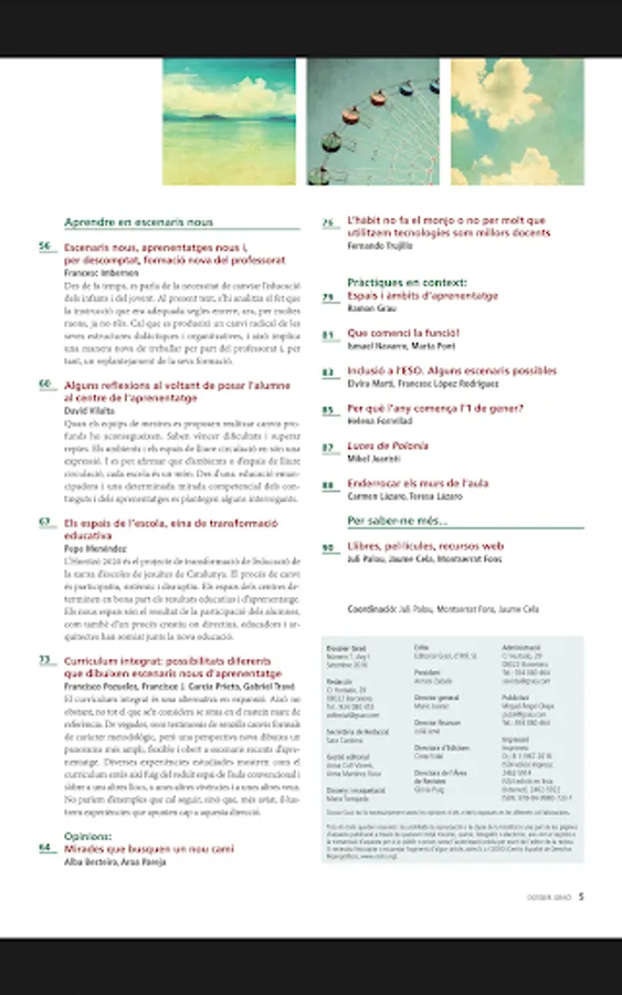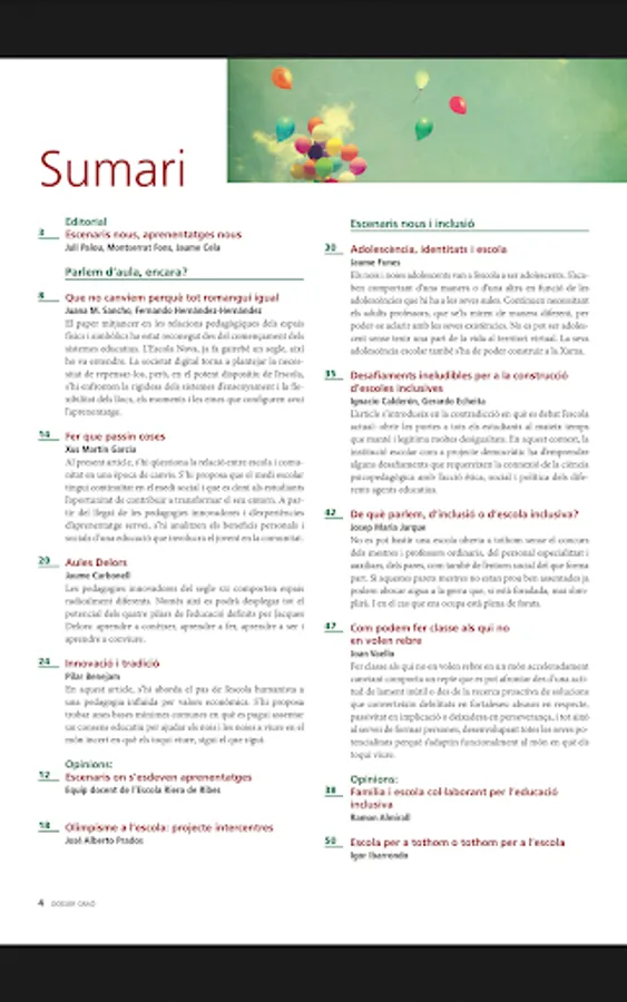 El Dossier Graó tracta de forma rigorosa i exhaustiva temes d’innovació educativa. Organitzat en blocs temàtics i amb la participació d’experts d’àmbits professionals i geogràfics diversos, pretén oferir una mirada àmplia i variada del panorama educatiu actual, amb les seves llums i ombres. Un dossier replet de reflexions, opinions i propostes de bones pràctiques per estar al dia de la innovació i de les noves tendències al món de l’educació.