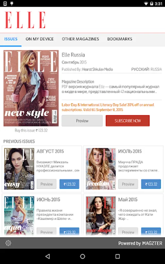 Elle — самый популярный журнал о моде в мире, представленный 42 национальными изданиями. Его концепция уникальна: понятие «мода» выходит за привычные рамки и имеет отношение к образу жизни в целом. Elle — это новейшие тенденции в области LifeStyle, самые горячие новости из мира моды и красоты, самые яркие звезды и самые актуальные статьи о психологии современной женщины, нацеленной на успех.