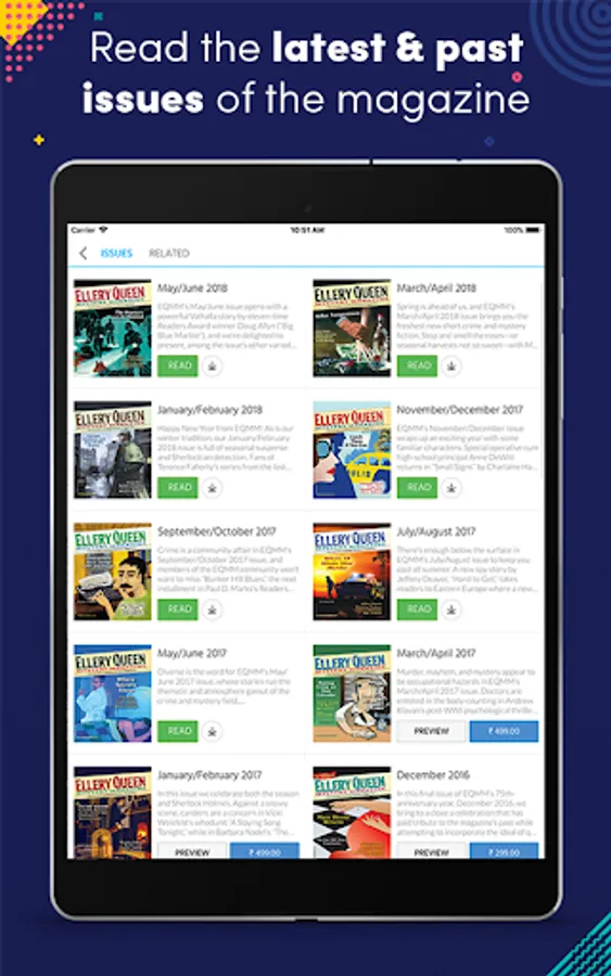Published since 1941, Ellery Queen’s Mystery Magazine is America's oldest and most celebrated crime-fiction publication. "The best mystery magazine in the world, bar none," states Stephen King. Featured in its pages are short stories by the world’s leading writers of suspense. The full range of the genre is covered, from the cozy to the hardboiled, the historical to the contemporary—including police procedurals, P.I. stories, psychological suspense, locked-room and impossible-crime tales, classical whodunits, and urban noir. Ellery Queen's Mystery Magazine is home to many bestselling authors, including Joyce Carol Oates, Chuck Hogan, Jan Burke, Lawrence Block, and Marcia Muller.