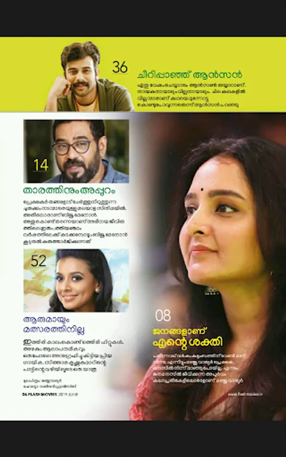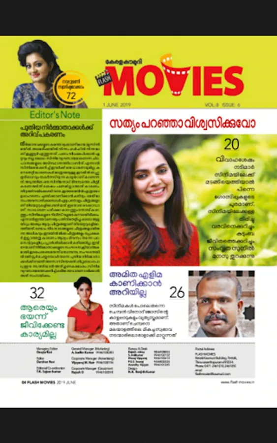 A monthly magazine in Malayalam dedicated to the Movie and Entertainment world. Tons of Photo shoots, Interviews, Reviews, Movies news, Exclusives and much more, keeping you up to date on the happenings of Tollywood. Brought to you by Kerala Kaumudi, one of the foremost publishing houses in Kerala since 1911.