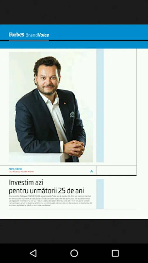 Pentru a marca aniversarea centenarului brandului Forbes, Forbes România va relansa ediția tipărită a revistei într-un nou format grafic spectaculos. Articolele Forbes România descriu afacerile ca pe o parte esenţială a vieţii, iar poveștile de afaceri aduc inspiraţie, fideli principiului că prin încercări repetate, totul este realizabil. Aproape toate poveştile Forbes România sunt spuse prin intermediul unei persoane. 80% dintre subiecte acoperă piaţa românească, 20% reprezintă teme preluate din ediţiile internaționale ale revistei. Informăm prin claritate, logică şi fapte. Misiunea noastră este de a da cititorilor idei care să îi ghideze în viaţa personală, în afaceri sau investiţii.