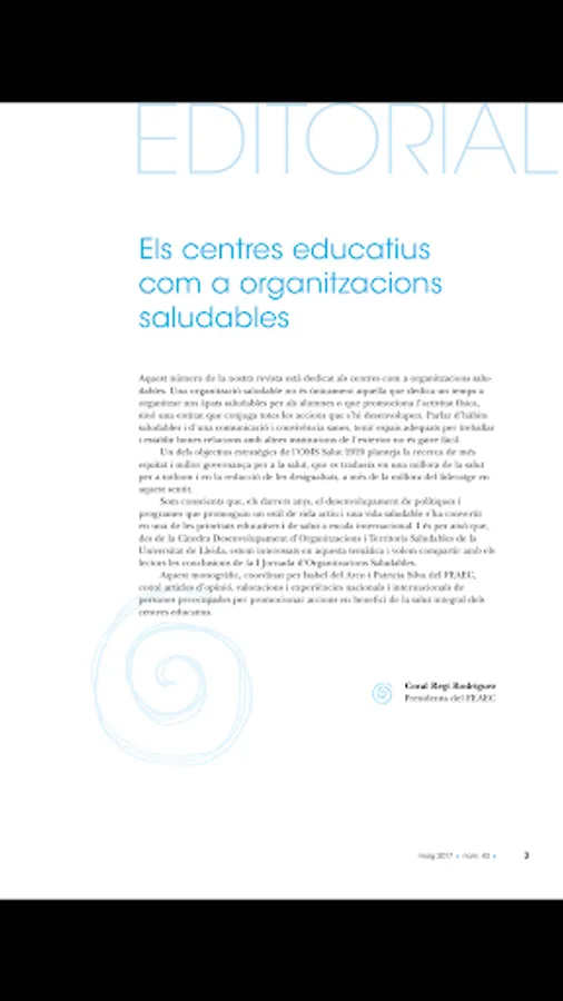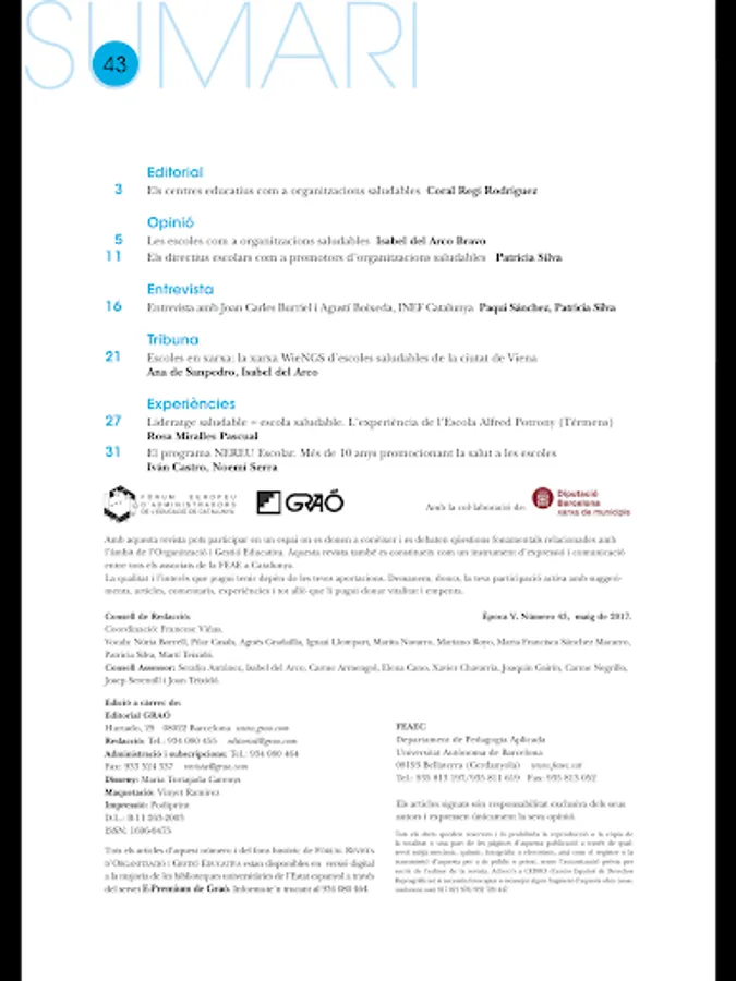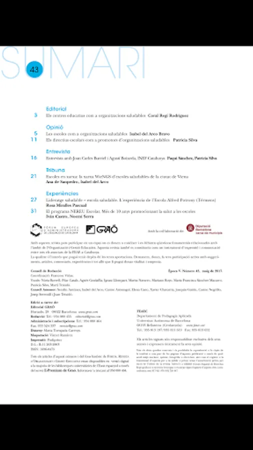 Revista d’Organització i Gestió Educativa. La revista Fòrum desenvolupa una tasca divulgativa entre l'equip directiu del centre, identificant-se amb una línia de reflexió plural i oberta. És una eina professional de coneixement, comunicació i acció, que permet estar al dia i resoldre els problemes pràctics i teòrics al centre.
