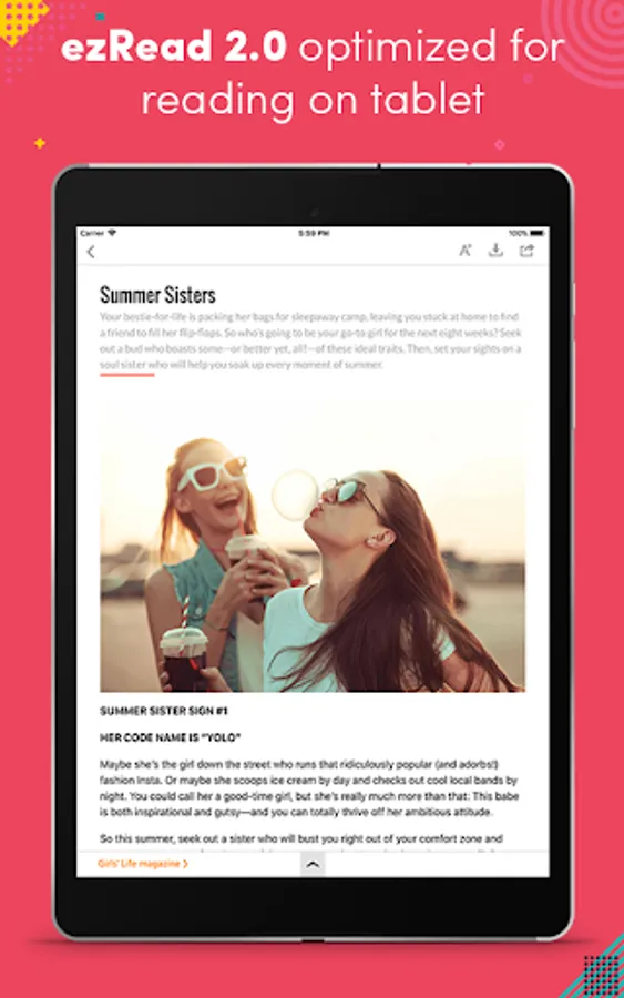 Get Girls’ Life magazine! Now you can take GL everywhere you go. You’ll get unlimited access to style tips and trends, easy beauty and hair how-to's, workouts that work, smart guy/friend/school advice, fun quizzes, inside scoop on your fave celebs and more!