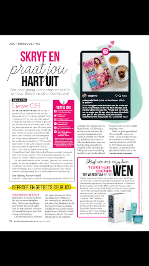Beproef, Getoets en Betroubaar Goeie Huishouding is gerig op vroue wat gehalte en waarde in elke faset van hul lewe soek. Good Housekeeping en sy Afrikaanse eweknie, Goeie Huishouding, bied vroue leesstof wat inspirasie vir hul besige lewens bied — van gesondheid tot kos en fiksheid, skoonheid en mode tot tuisteskepping en ouerskap. Die tydskrif se redaksionele belofte is om inhoud te verskaf wat "beproef, getoets en betroubaar" is, gerugsteun deur Goeie Huishouding se stempel van goedkeuring. Neem asseblief kennis: die digitale weergawe van die tydskrif sluit nie die gratis produkte in wat gewoonlik saam met gedrukte tydskrifte op tydskrifrakke verpak word nie.