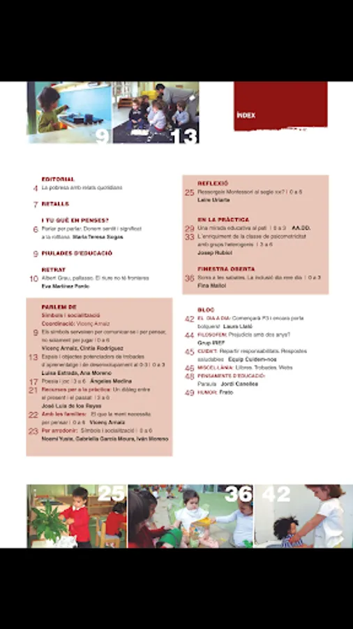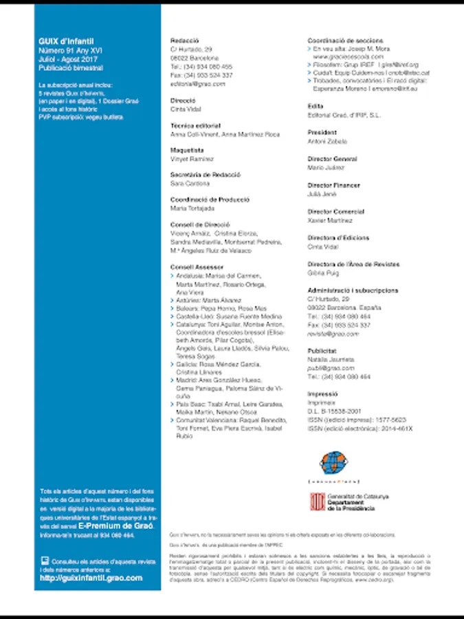 La revista Guix d'Infantil desenvolupa una tasca divulgativa entre el professorat d'educació infantil, identificant-se amb una línia de reflexió plural i oberta. És una eina professional de coneixement, comunicació i acció, que permet estar al dia i resoldre els problemes pràctics i teòrics a l’aula.