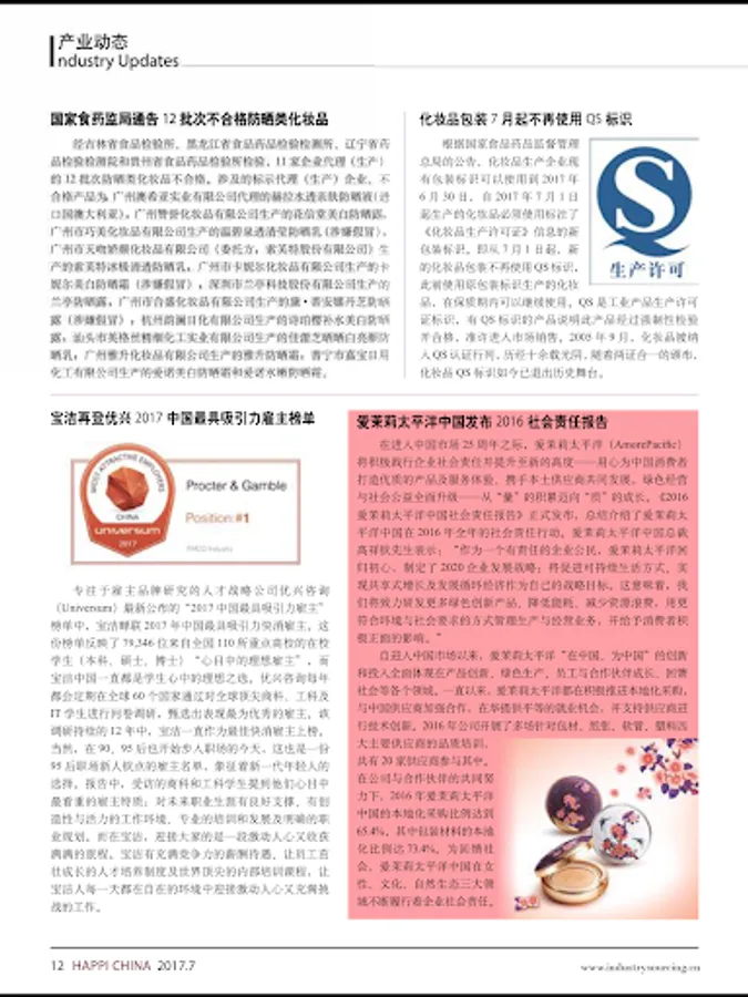 HappiChina 与美国 HAPPI 和 Beauty Packaging 杂志,以及中国本土权威的编辑顾问团队密切合作,提供行业内深度报道,覆盖范围从最新研发动态到配方、配制、包装和生产等方面的市场趋势。而所有这些内容都通过多媒体平