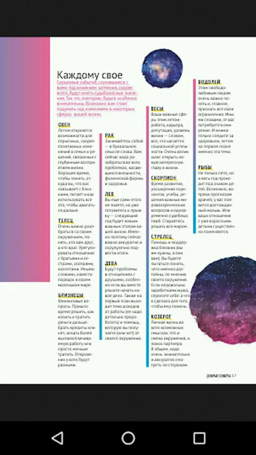 «Добрые советы» — это ежемесячный журнал для женщин. Его главные темы — секреты привлекательности, хорошего самочувствия, домашнего уюта и гармонии в отношениях с близкими. Каждый номер журнала открывает интервью со звездой — о ее личной жизни, профессиональных успехах, о доме, семье и детях. Журнал «Добрые советы» рассказывает обо всем, что интересует современную женщину. Стильные идеи и модные акценты. Новинки косметики. Меню здоровья и рецепты красоты. Дети и родители. Кошелек и карьера. Адвокатское бюро. Женские истории. Независимые тесты бытовой техники, продуктов и напитков. Секреты рационального ведения домашнего хозяйства. Каждый месяц в журнале «Добрые советы» 8 оригинальных рецептов на карточках — в домашнюю коллекцию фирменных блюд!