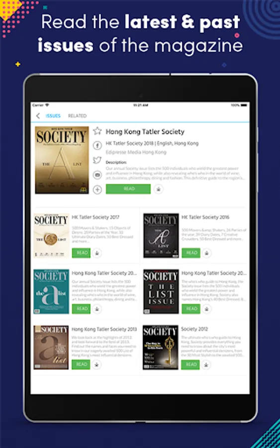 The who’s who guide to Hong Kong, the Society issue lists the 500 individuals who wield the greatest power and influence in Hong Kong. Society also names Hong Kong’s 40 style icons, 60 most invited guests, Asia’s 10 most stylish ladies and showcases the 20 top parties of the year.
