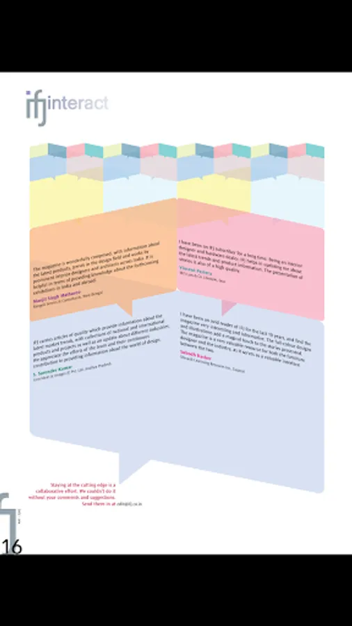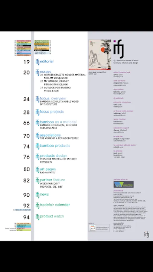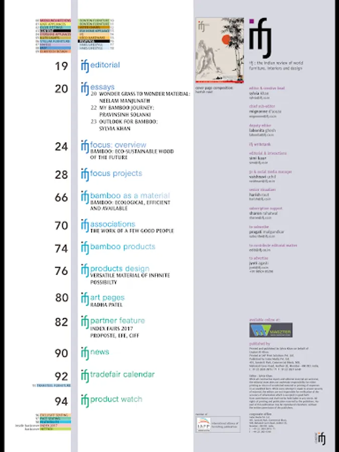IFJ covers products across industry groups including furniture; for residential, on contracts, offices, kitchen and hospitality, lighting, accessories and artefacts, tiles, bath and sanitary ware, furniture and architectural hardware. The large – format and design-centric layout is a magnet for the highly erudite and sophisticated target reader i.e. the architect and designer community which is responsible for key buying decisions for builders, developers and affluent individual clientele. High quality visuals and beautifully laid out copy provide the right accent to invite readership, while highlighting the key products and advertising.