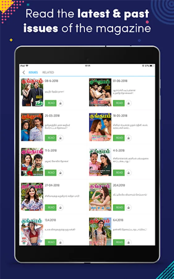 குங்குமம் Kungumam is the largest selling No.1 Tamil Weekly as per the ABC report. It carries every week a blend of entertainment and useful news articles. So that it satisfy every kind of readers and various age group readers. Started by முரசொலி மாறன்Murasoli Maran on 25.12.1977, it find a place in every Tamilian home very soon. சுஜாதா, வைரமுத்து, எஸ்.ராமகிருஷ்ணன், பா.விஜய், அசோகமித்திரன், மனுஷ்யபுத்திரன், பாலகுமாரன் are some writers contributed on various occasions in Kungumam. Social issues, Tamil cinema, Literature, National News, Useful news items are some strong areas of Kungumam.