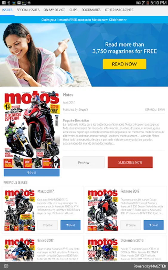 La revista sobre el mundo de las motos para los auténticos aficionados. Motos ofrece en sus páginas todas las novedades del mercado, información, pruebas, dossiers, informes, guías, accesorios, reportajes sobre las motos más populares del momento... Motos tiene todo lo necesario, desde un punto de vista cercano y práctico, para los apasionados del mundo de las dos ruedas.