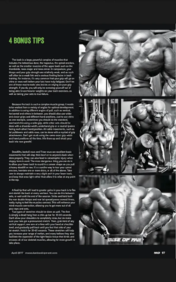 Muscular Development gives you the colorful, no-bull inside story about professional bodybuilding— from Mr. Olympia champions, Hall of Fame bodybuilders, doctors, researchers, industry experts and insiders who make it all happen. Muscular Development features cutting-edge research and authoritative information on building muscle, burning fat, improving fitness and enhancing sexual performance. Muscular Development educates its readers on how to improve performance, increase strength, improve health and build the best physique possible.