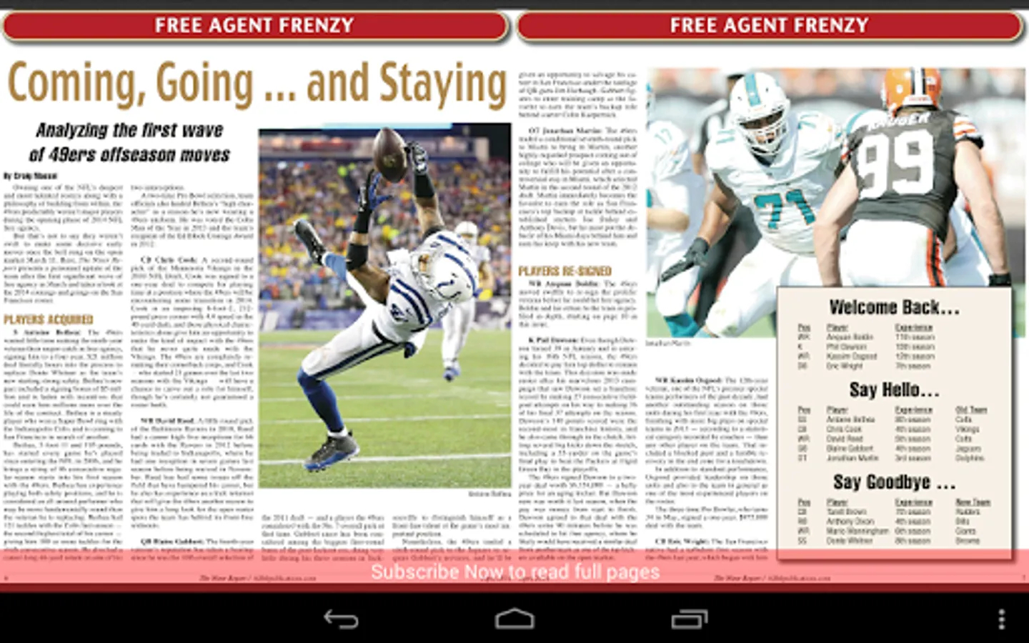 The NFC Champion 49ers finished one play short in the Super Bowl but have a bright future ahead. The team found its next great offensive weapons in quarterback Colin Kaepernick and wide receiver Michael Crabtree, and the 49ers are ready to reload with talent in free agency and the draft. You’ll want to be there every step of the way as we take an inside look at their free agency signings in March and their draft haul in April, not to mention their OTAs and minicamps.