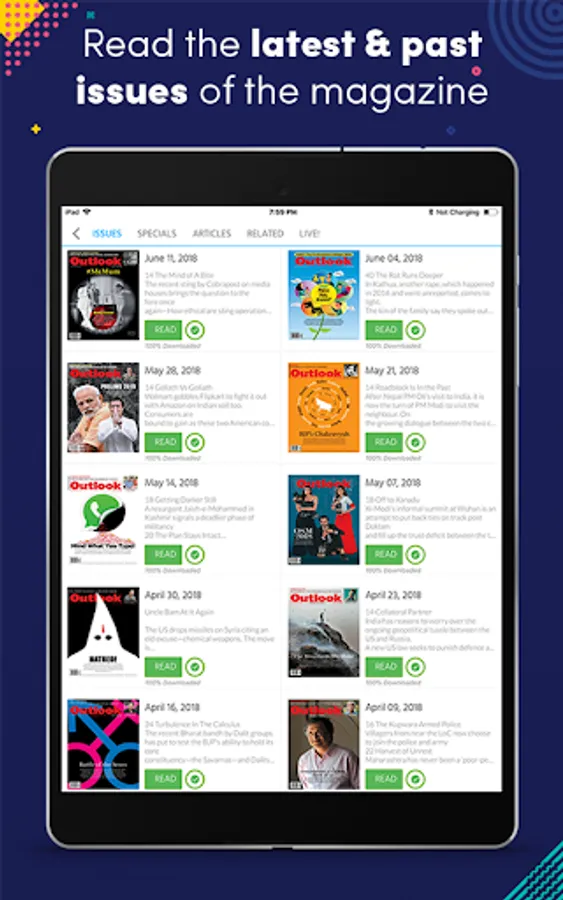 Outlook’ is India’s most vibrant weekly news magazine with critically and globally acclaimed print and digital editions. Now in its 23rd year, Outlook's award-winning journalism has made the important interesting with groundbreaking public-interest and investigative reportage which has fetched it the International Press Institute Award for Excellence in 2007 and the World Media Summit Award in 2014.