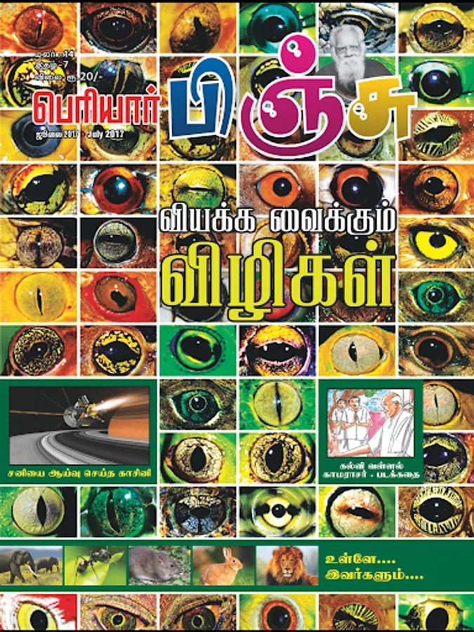 ‘Periyar Pinju’, the children’s monthly magazine has been published since May 1988 with Dr.K.Veeramani, M.A., B.L., as its Founder Editor. The purpose of this journal is to inculcate children with rationalist ideas and help them develop a scientific temper. For the past 24 years the journal has facilitated thousands of children to learn more in the areas of General Knowledge, science and wise thoughts and ideas. This magazine is published by Dr.K. Veeramani, M.A.,B.L., on behalf of The Periyar Self-Respect Propaganda Institution, #84/1(50), EVK Sampath Salai, Vepery, Chennai-600 007, Tamil Nadu, India. March 2023