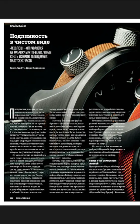 Журнал Revolution («Революшн») — одно из ведущих мировых изданий, посвященных механическим часам и стилю жизни, тех, кому интересен мир точной механики — был основан в Сингапуре в марте 2005 года и с первого же номера завоевал симпатии часовых компаний и любителей часов не только в Азии, но и во всем мире. Осенью 2006 года с успехом была запущена американская версия журнала, в 2007 появился Revolution на русском языке. Сейчас журнал Revolution выходит в России, Сингапуре, США, Италии, Китае и Гонконге, Испании, Мексике и Швейцарии. Revolution – это не только пленяющий и завораживающий мир часов. Это все, что соответствует роскошному образу жизни их ценителей — от дорогих автомобилей до изысканных украшений. Revolution – это образ жизни и стиль тех, кто стремится окружить себя комфортом и красотой. Качество и достоверность материалов имеют для редакции журнала первостепенное значение. Revolution – трибуна для производителей предметов и услуг класса «люкс», и всячески подчеркивает огромную ценность такого исключительного товара, как часы.
