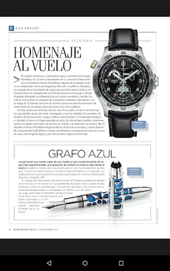 Lo mas Top en el mundo de lujo con estilo de vida. Temas como: información sobre relojeria, audio, ingenieria naval y aerea, recomendaciones de los mejores vinos y licores, los mas exclisivos viajes y restaurantes al rededor del mundo sin dejar atras las tendencias de moda, Lider en temas de lujo y estilo exclusiva para un público exigente.