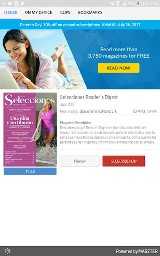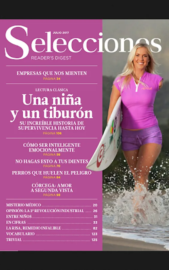 Descubre por qué Reader’s Digest es la revista más leída del mundo. Selecciones es la edición en España de esta mítica revista, editada en nuestro país desde los años cincuenta, con la que tantas personas se han inspirado, informado y entretenido con su amplia variedad de historias sobre gente, salud, humor, aventura, viajes y acontecimientos alrededor del mundo. Reportajes escritos por los mejores periodistas y verificados hasta los más mínimos detalles para garantizar a sus lectores la mejor y más completa información.