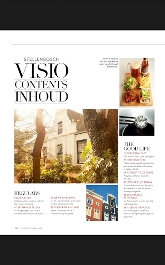 Innovation | Food | Culture | People | Stellenbosch Visio is a refined lifestyle title, delivering an insider’s guide to places, products, property and services to residents, visitors and the area’s working population.