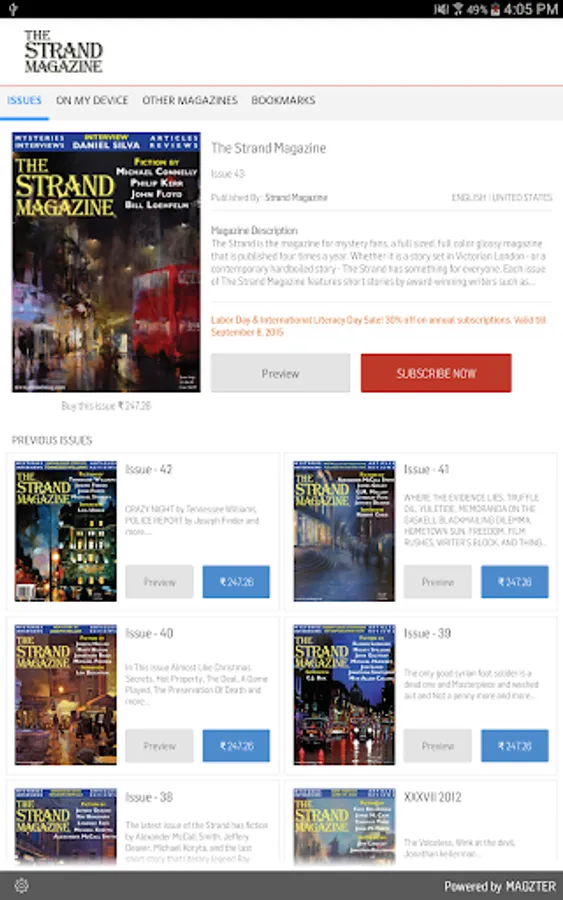 The Strand is the magazine for mystery fans, a full sized, full color glossy magazine that is published four times a year. Whether it is a story set in Victorian London - or a contemporary hardboiled story - The Strand has something for everyone.