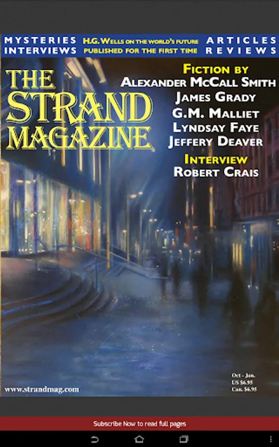 Each issue of The Strand Magazine features short stories by award-winning writers such as Alexander McCall Smith, Ray Bradbury, Michael Connelly, Faye Kellerman, and R.L. Stine, plus interviews with actors and best-selling writers such as David Baldacci, Christopher Plummer, Sandra Brown, Jonathan Kellerman, and Peter Falk. The Strand has a wide array of articles from our series on "The Great Detectives" to profiles of mystery authors past and present. The Strand also publishes articles about true crimes, recent articles have included a study of the Jack the Ripper murders and an investigation into the Da Vinci code phenomenon. In addition, each issue of The Strand has at least twenty book and audiobook reviews which look at the newest releases from large as well as smaller publishers.