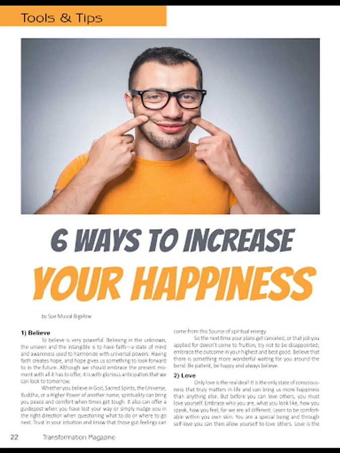 Transformation Magazine is content-rich and real, designed to inspire and empower readers to improve their lives through personal growth, healthy living, and spirituality.