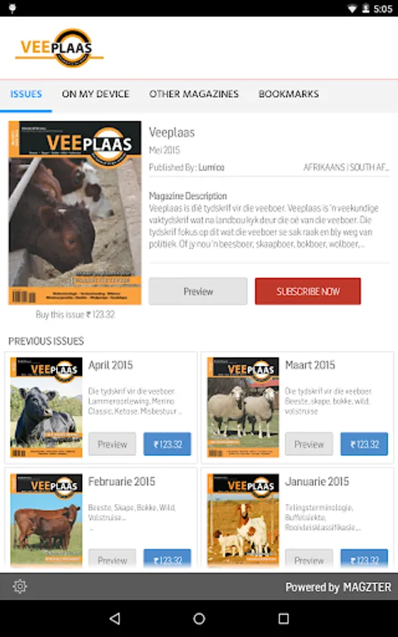 Veeplaas is diè tydskrif vir die veeboer. Veeplaas is 'n veekundige vaktydskrif wat na landbou kyk deur die oë van die veeboer. Die tydskrif fokus op dit wat die veeboer se sak raak en bly weg van politiek. Of jy nou 'n beesboer, skaapboer, bokboer, wolboer, melkboer of wildboer is - ons is die tydskrif vir jou!