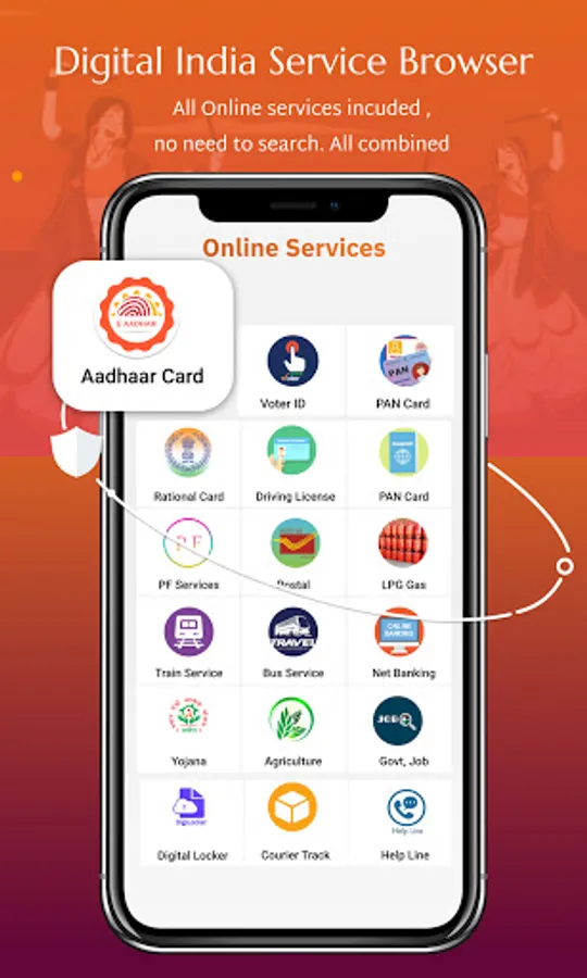 कई प्रकार की सरकार सेवाएँ जैसे :- ई आधार कार्ड,