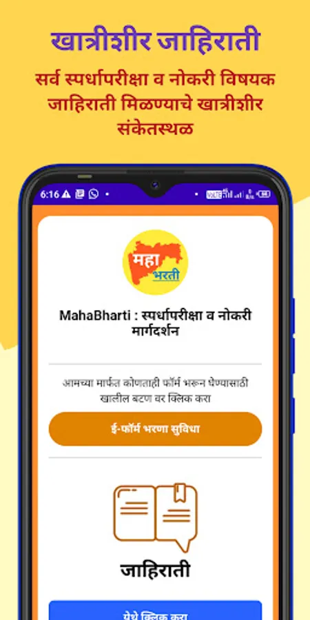 MahaBharti.net.in - Maharashtra Nokari and Competitive exams guide portal in Marathi Language. This is a perfect recruitment news application for Marathi Language users. Users will get daily sarkari naukri, marathi jobs, admit card, latest recruitment news, exam results, and more education information updates in Marathi Language.