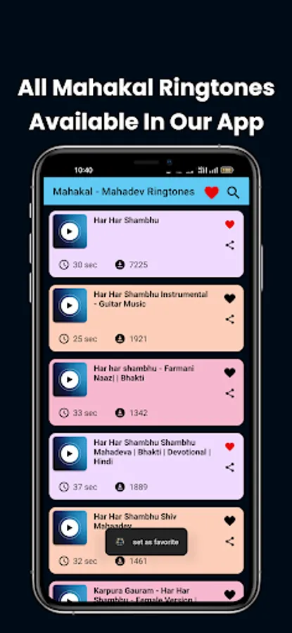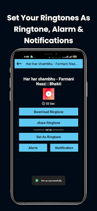 ☛ Set the Bhole Mahakal Mahadev Ringtone as default ringtone, Notification, Contact Ringtone or Alarm On just a Single Click.