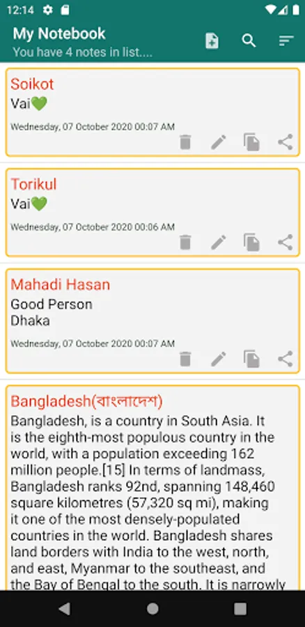 7--> Organize notes by sort(Newest, Oldest etc)