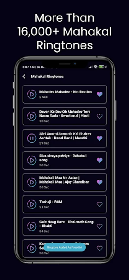 Set your phone apart with our "Shiv Ringtones" app! With a wide selection of ringtones to choose from, including chants, bhajans, and mantras dedicated to Lord Shiva, you can showcase your devotion to the great destroyer with every incoming call. Whether you're at home, at work, or on the go, you ca