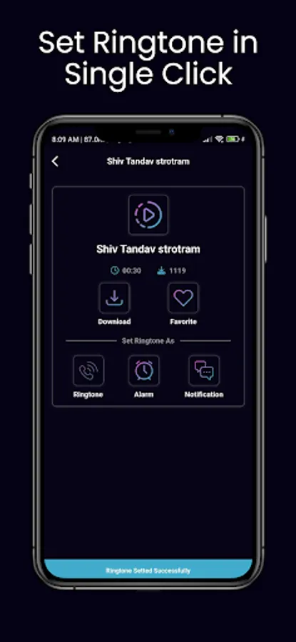 Get all collections of Shiv ringtones like shiv tandav, bhajan, Mahadev, shiv mantra, om namah shivay, and other Shiv ringtones. You can set your favorite Shiv Ringtones as Default Ringtone, Alarm Ringtone, or Notification Tone, also you can set your favorite Ringtone for particular Contact.