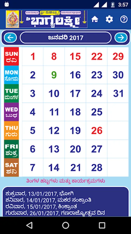 Calendar in Karnataka and all over India, which is also available through this app. All your