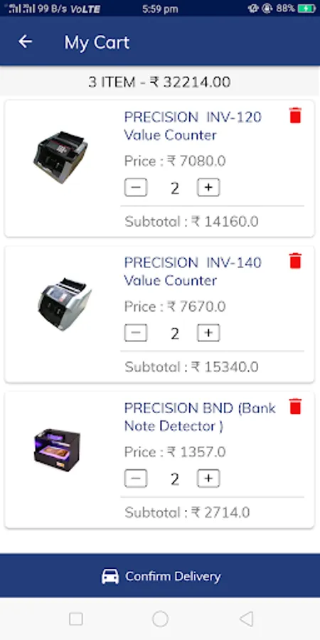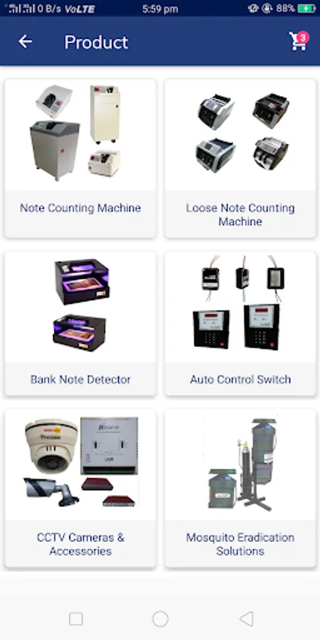 We have wide range of Currency Counting Machines, Loose Note Counting Machines,Spairs,Automatic Control Switches, CCTV camera and Supplies,Mosquito Eradication System and Bank Note Dictector. You can shop the various type of Note Counting Machines and othe products Online on the app.