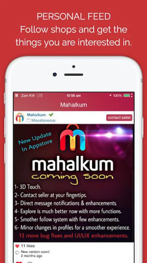 Take a picture, choose a filter and post to Mahalkum — it's that easy. You can even create your own categories and manage your merchandise. It's a fun, Social Marketplace.