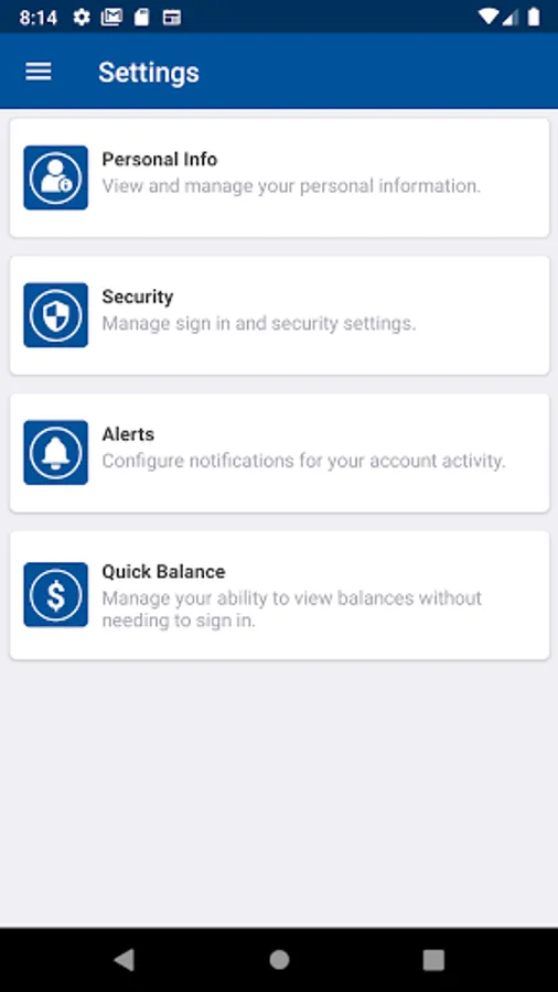 - Use Quick Balance to view account balances without signing in