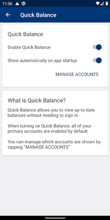 - Enable Quick Balances to monitor balances without signing in