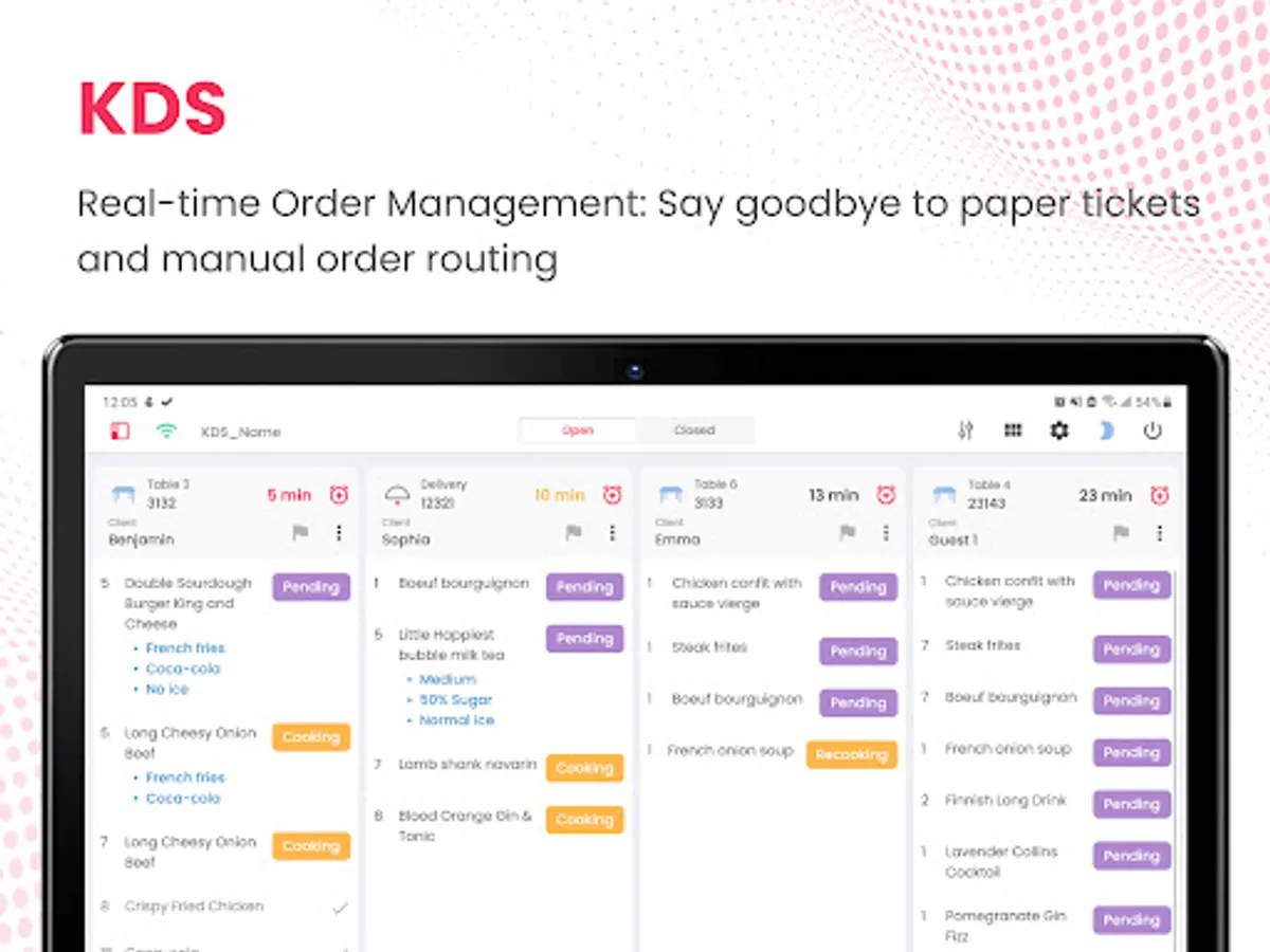 With our cutting-edge app, you can transform the way your restaurant manages orders and facilitates communication between the front-of-house staff and the kitchen team. Here are the key features of our KDS: