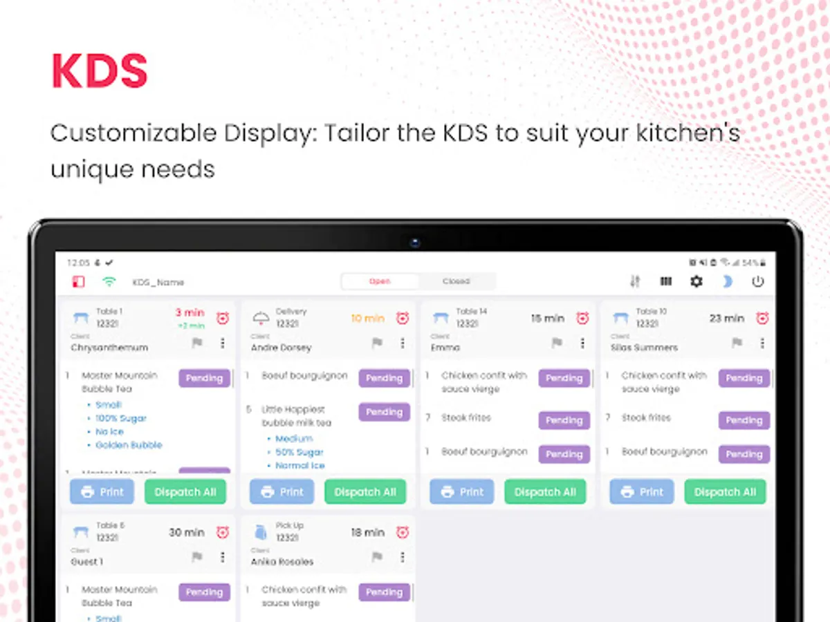 3. Timing and Order Tracking: Track the timing of orders and keep customers and staff informed. Our KDS allows you to monitor the progress of each order, notifying both customers and staff if an order is delayed or requires special attention. This helps you manage customer expectations and maintain efficient operations.
