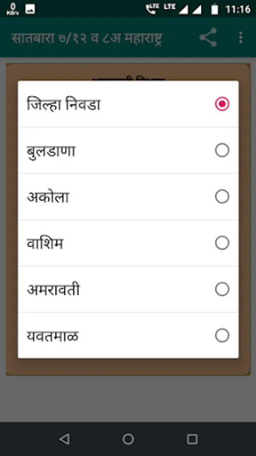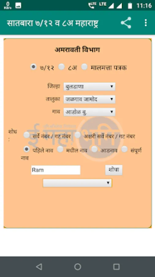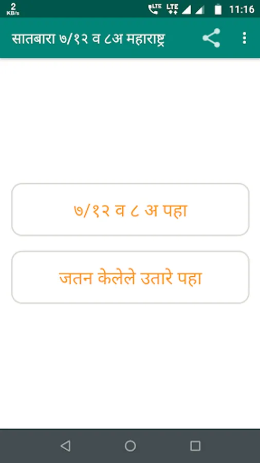 This app is very useful to see Satbara Utara (7/12) and 8A details of land records in Maharashtra State.