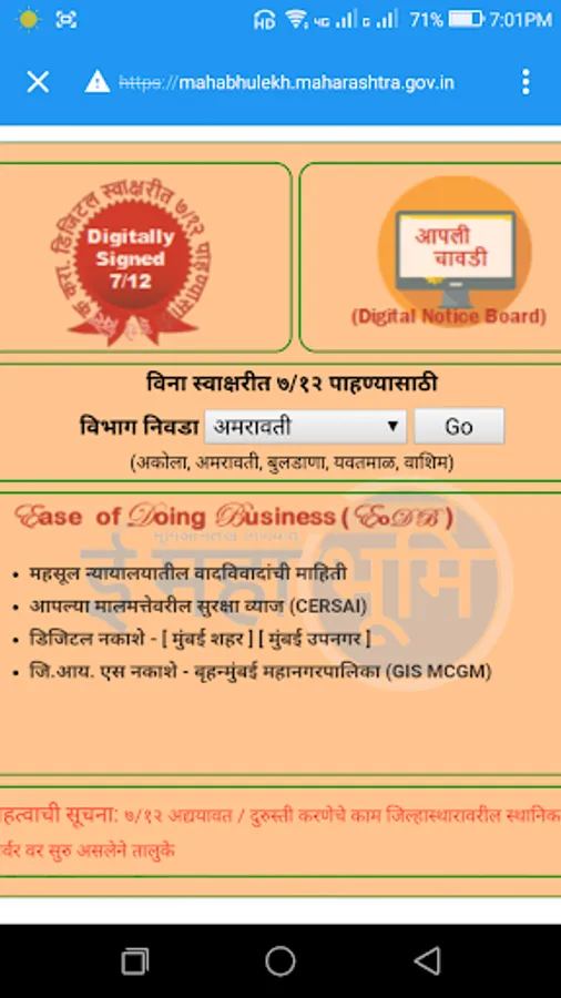 Now get your 8A and 7/12 Maharashtra in just a few clicks. All the districts of Maharashtra state are classified into Pune, Konkan, Nashik, Nagpur, Amravati, and Aurangabad departments in this App.