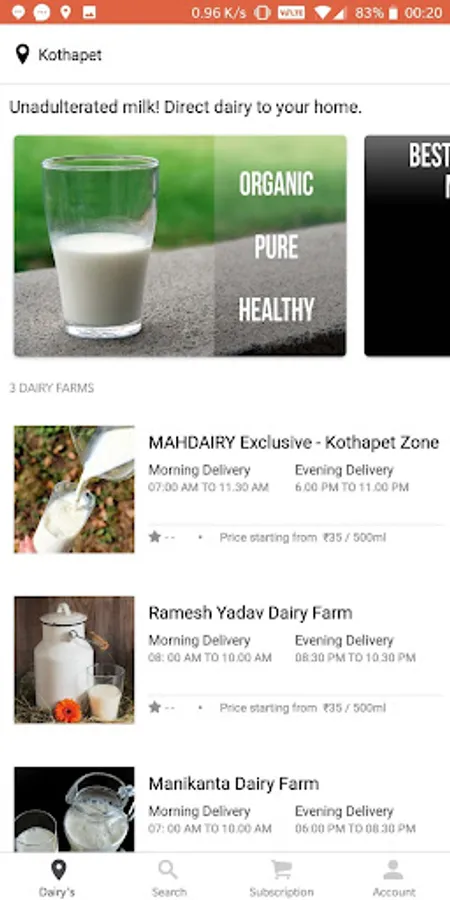 With MAH DAIRY, you can order pure, unadulterated, healthy milk from nearest dairy farm and get the milk delivered at your door steps in less than 60 minutes of milking buffaloes and cows!