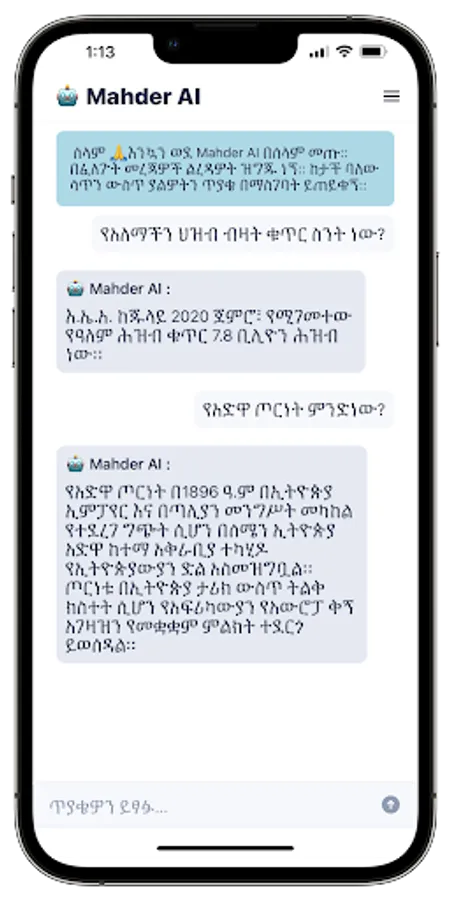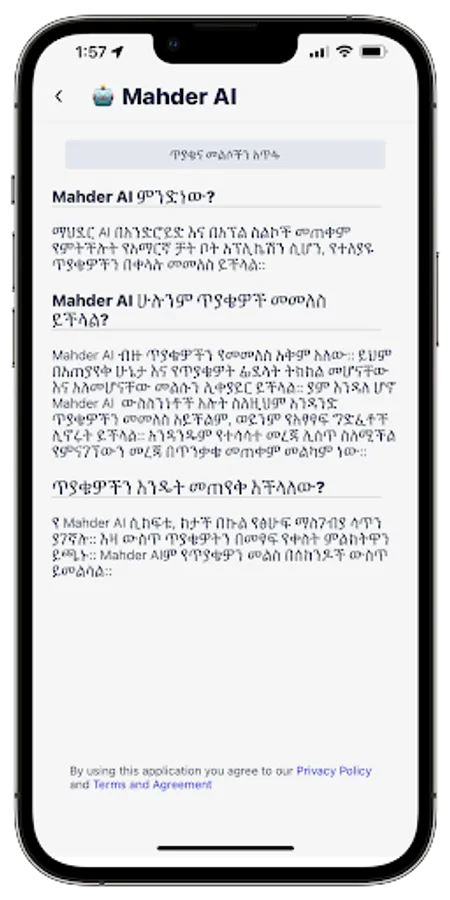 Mahder Al is the perfect AI chatbot for Amharic speakers! It uses advanced natural language processing techniques to understand and respond to user questions and commands in real time, providing accurate and reliable information in the user's native language. With Mahder Al, Amharic speakers can easily access a wide range of information and communicate with others using their native language, no matter where they are. So why wait? Try Mahder Al today and experience the convenience and power of AI-powered communication in your own language!