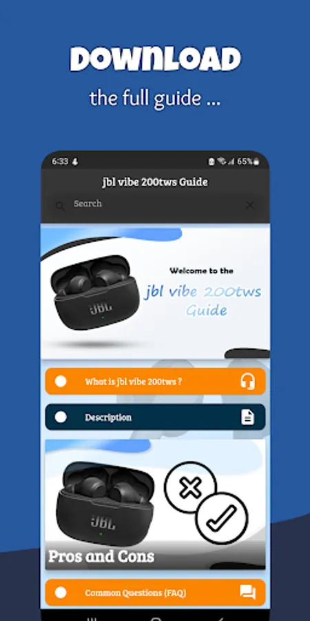 ✓ This jbl vibe 200tws Guide app rich in information and pictures.
