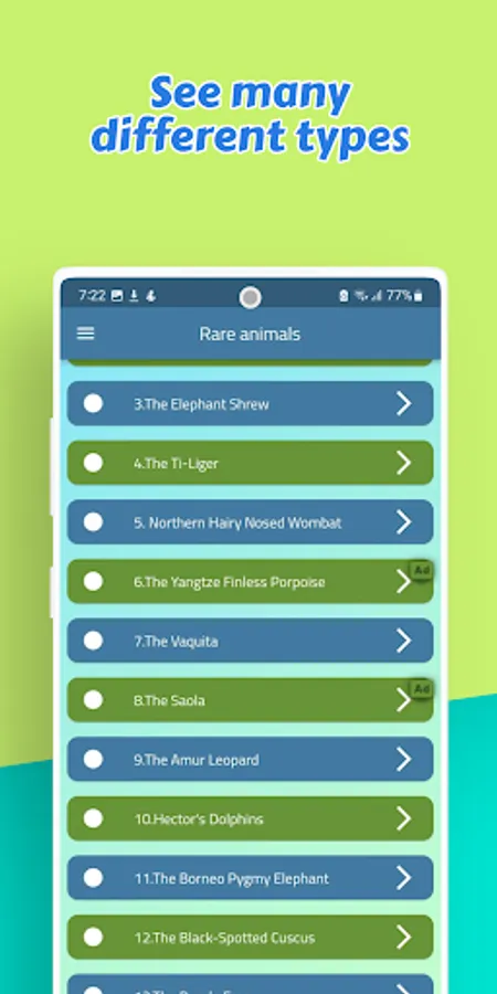 You can install the application, the rarest animals, and browse the pages of the application that are full of interesting and interesting information about the rarest animals in the world