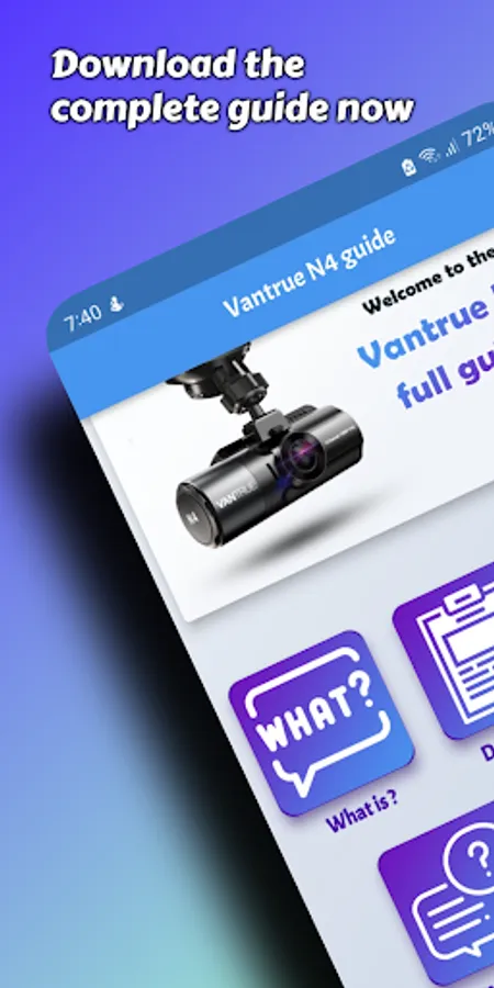 *Note: This mobile app is a guide for Vantrue N4 . It is not an official application or part of it.