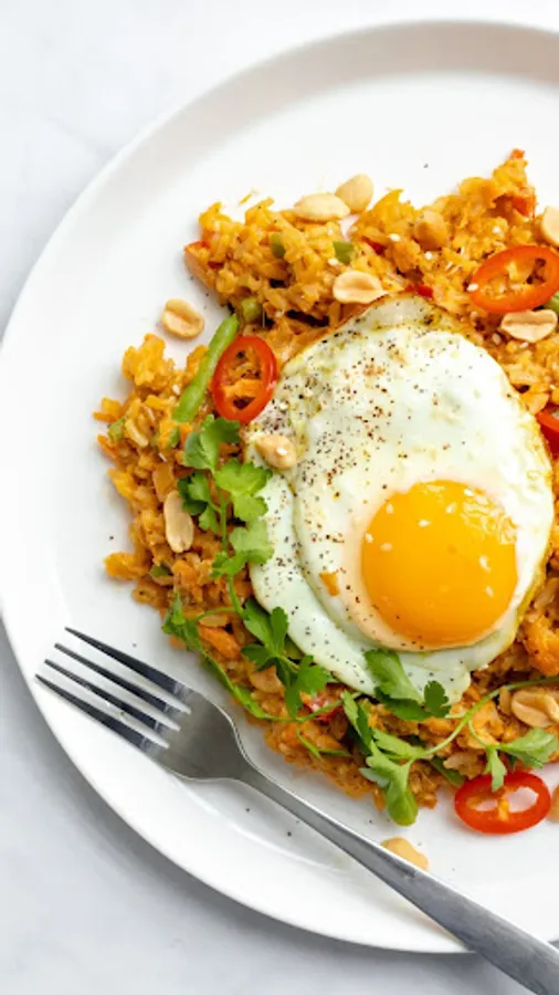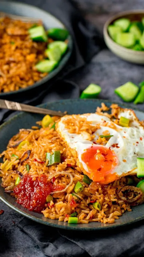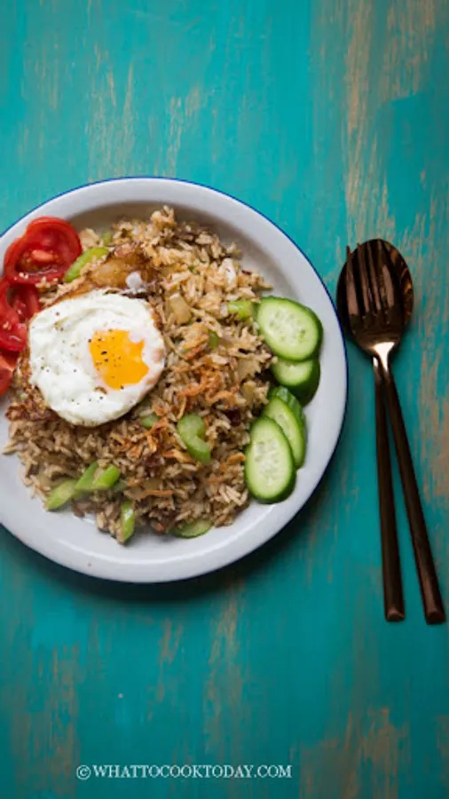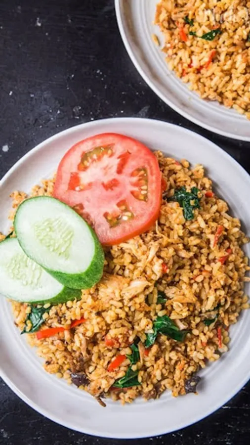 Fried rice is food in the form of rice that is fried and mixed in cooking oil, margarine or butter. Usually added with sweet soy sauce, shallots, garlic, tamarind, pepper and other ingredients; such as eggs, chicken meat, and crackers. There is also another type of fried rice made with salted fish which is also popular throughout Indonesia.