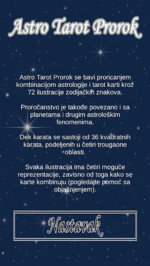 Astro Tarot prophet is a free application for fortune telling by traditional tarot astro-method. The application is very simple to use, like a horoscope. Prophecy depends on your date of birth and the moment when you open the map to get the prophecy, and is associated depending on the planets and other astrological phenomena.