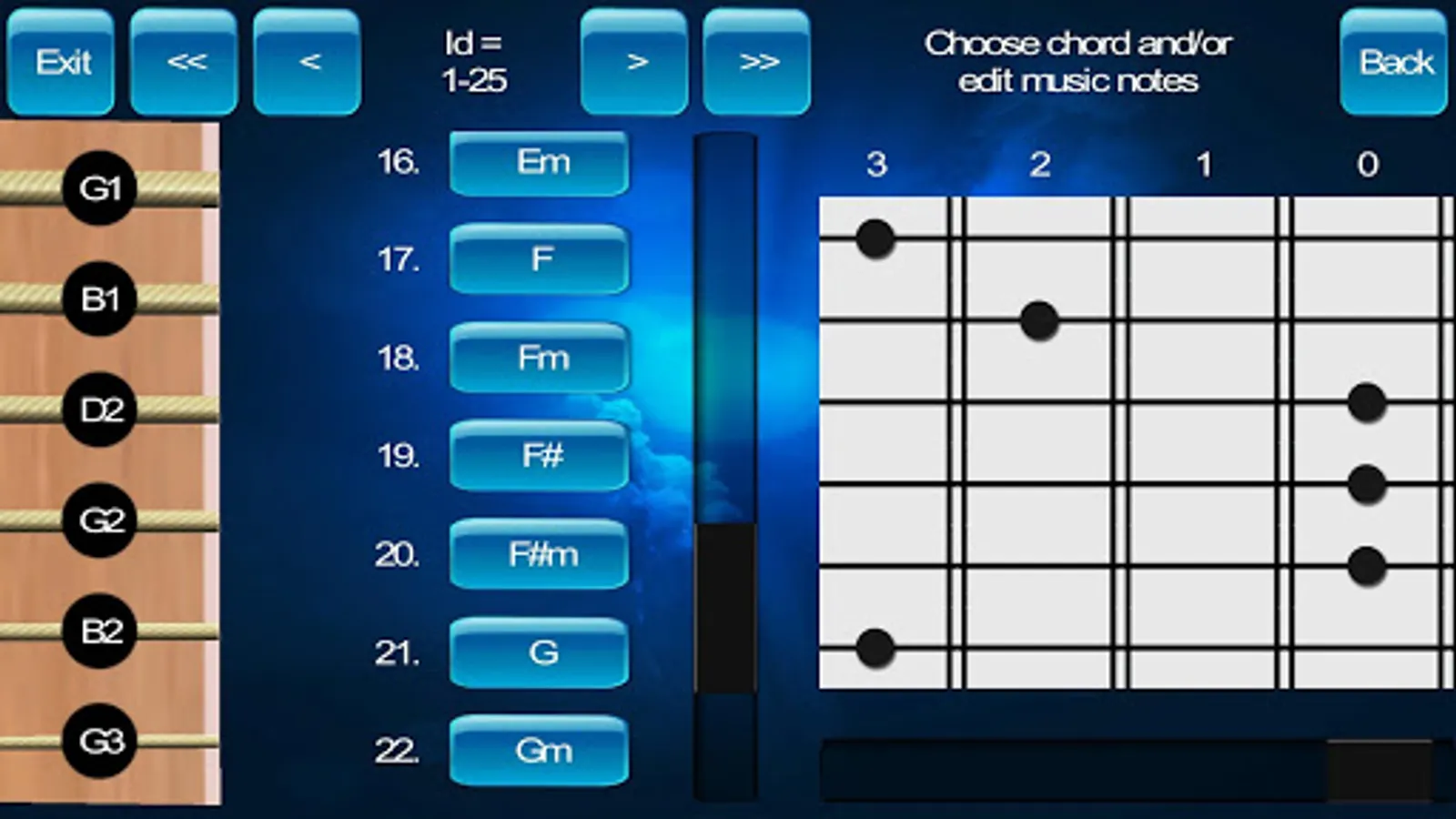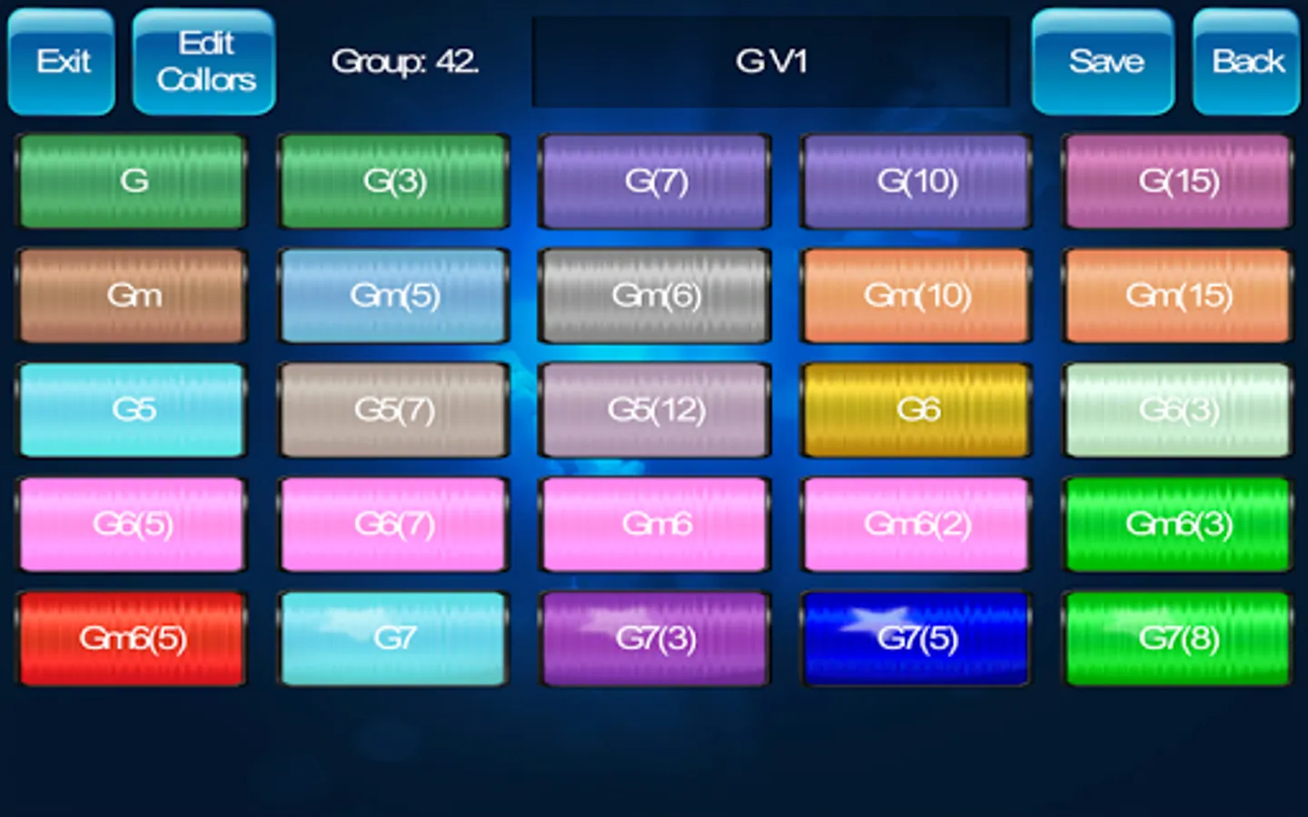 - 100 editable groups with 25 chords (2500 editable chords)